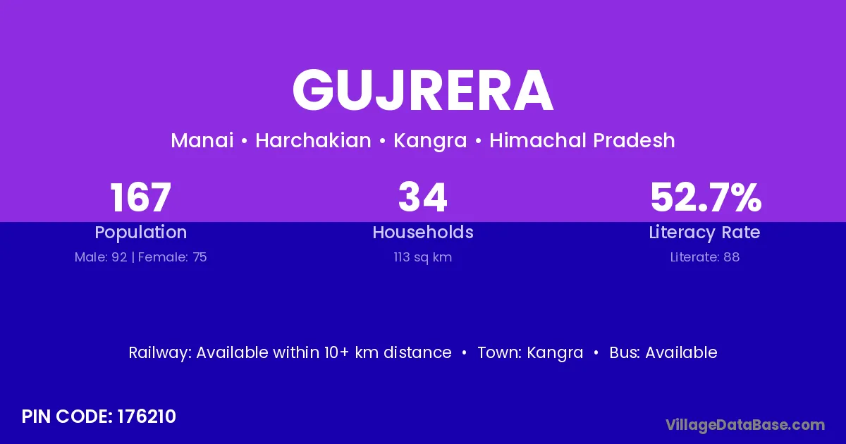 According to Census 2011 information, the village code of Gujrera village is 174030.
