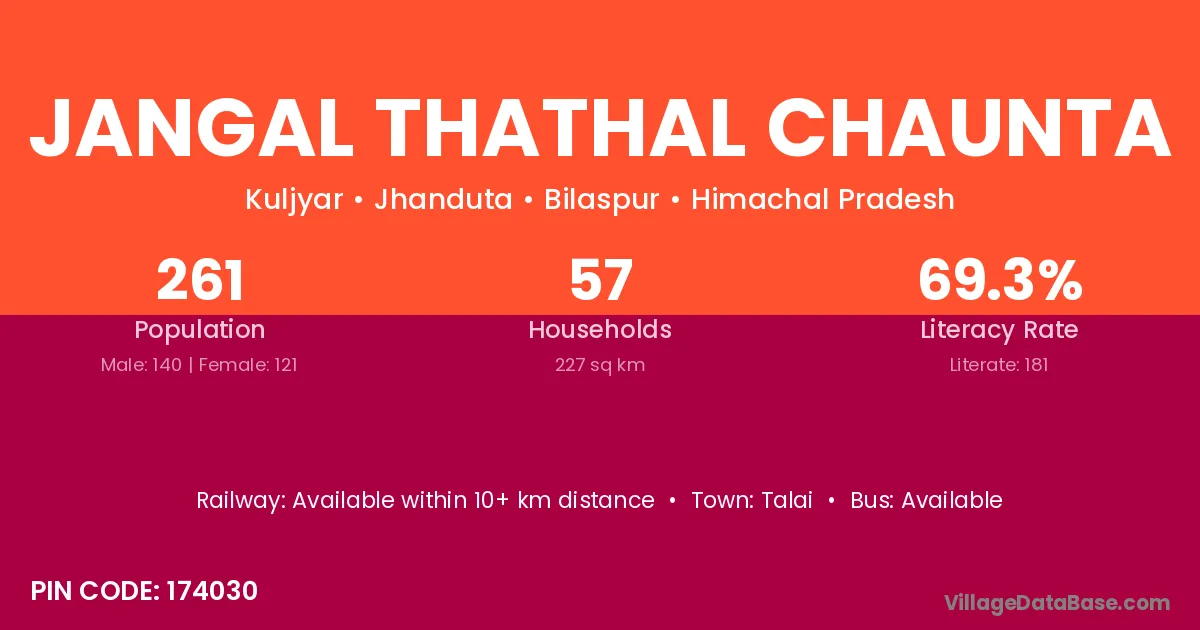 Jangal Thathal Chaunta village has a total population of 261 people, of which 140 are males and 121 are females.