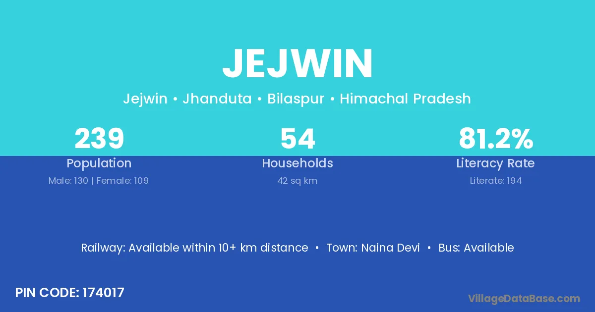 According to Census 2011 information, the village code of Jejwin village is 174017.
