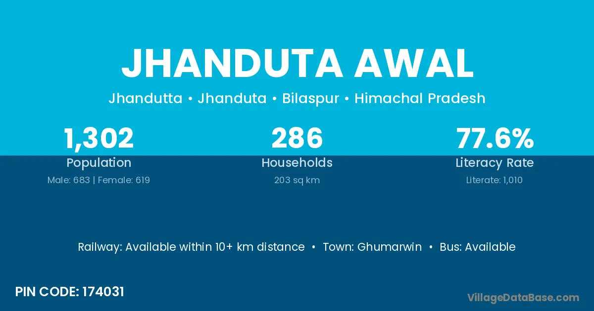 According to Census 2011 information, the village code of Jhanduta Awal village is 174031.