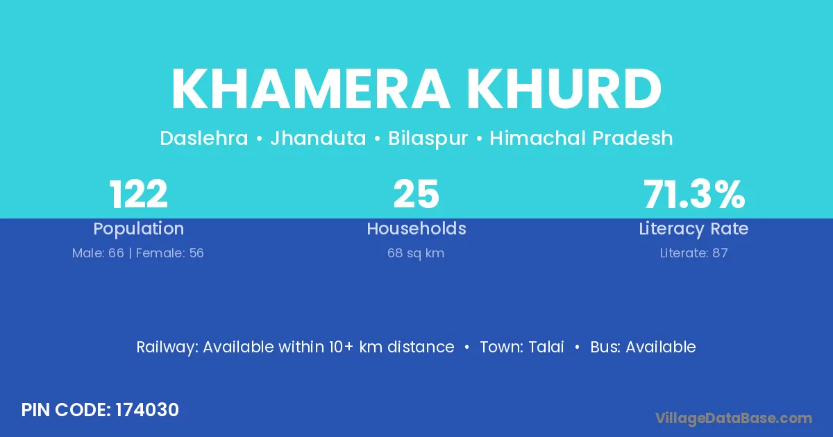 Khamera Khurd village has a total population of 122 people, of which 66 are males and 56 are females.