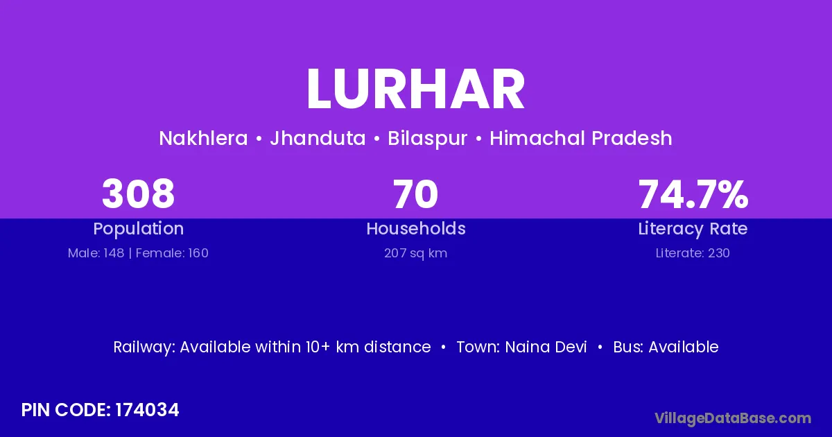 According to Census 2011 information, the village code of Lurhar village is 174034.