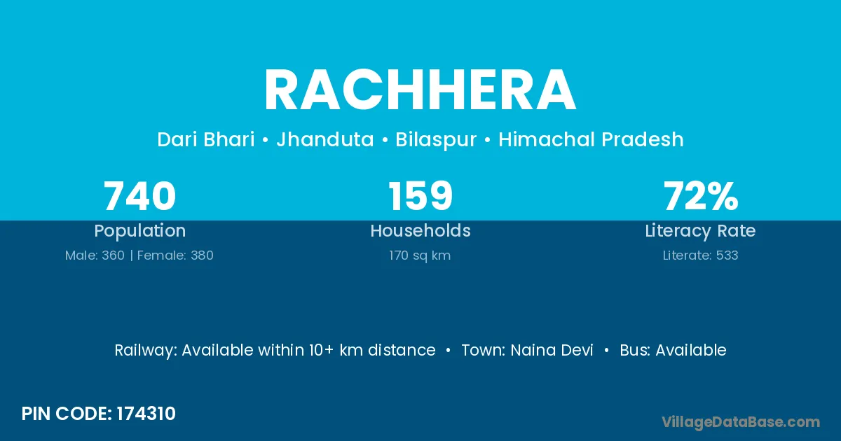 Rachhera village has a total population of 740 people, of which 360 are males and 380 are females.