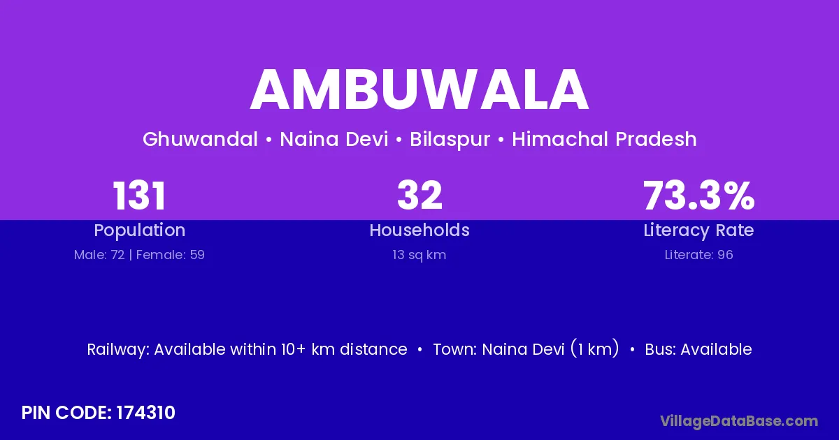 Naina Devi (1 km) is the nearest town to Ambuwala village for major economic activities and is located approximately 1 km away.