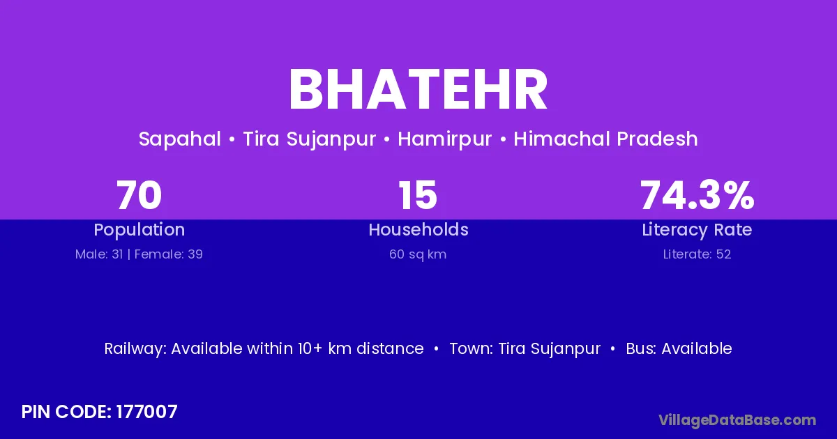 According to Census 2011 information, the village code of Bhatehr village is 174011.