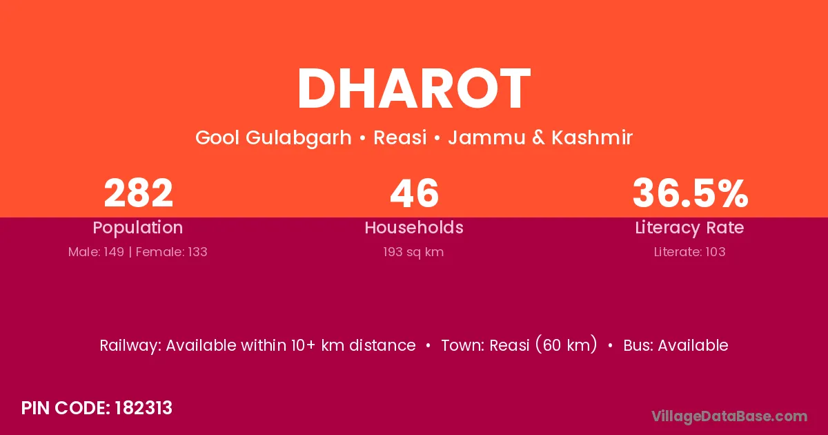 Dharot village has a total population of 1,171 people, of which 643 are males and 528 are females.