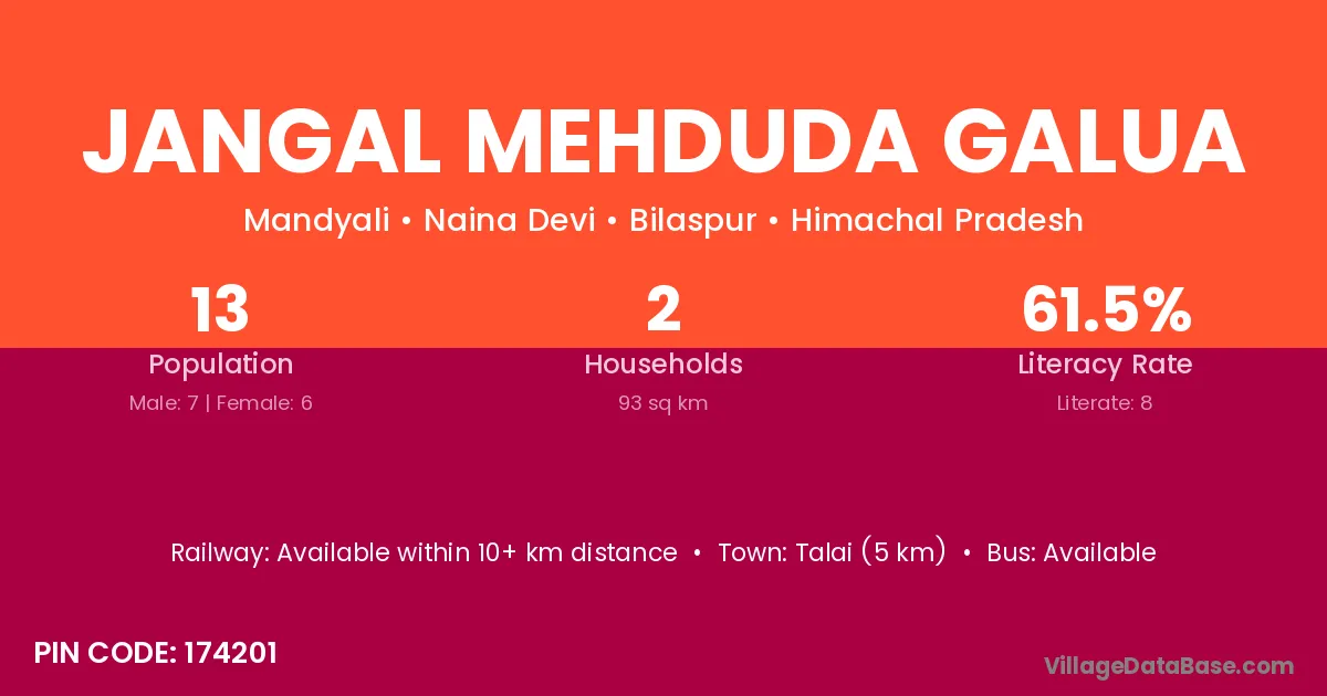 Jangal Mehduda Galua village has a total population of 13 people, of which 7 are males and 6 are females.