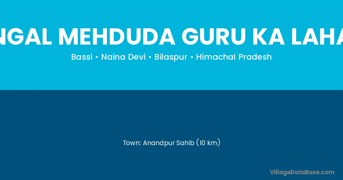Anandpur Sahib (10 km) is the nearest town to Jangal Mehduda Guru Ka Lahaur village for major economic activities and is located approximately 10 km away.