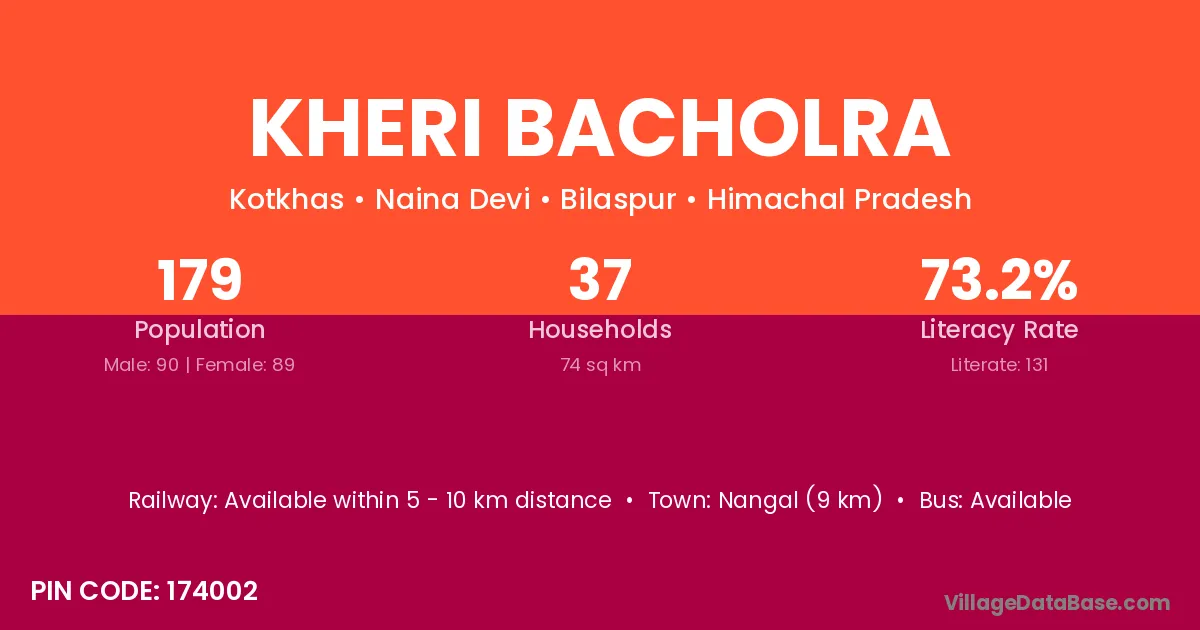 Nangal (9 km) is the nearest town to Kheri Bacholra village for major economic activities and is located approximately 9 km away.