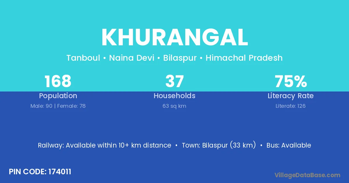 Bilaspur (33 km) is the nearest town to Khurangal village for major economic activities and is located approximately 33 km away.