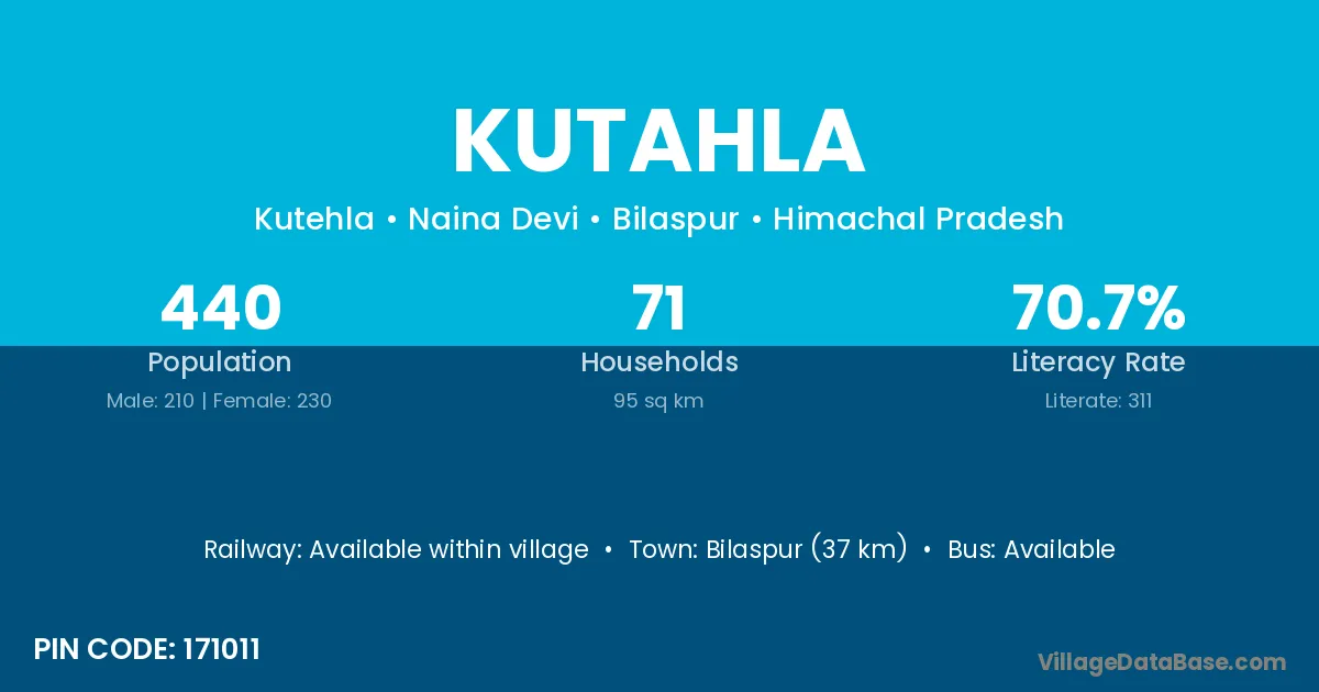 Bilaspur (37 km) is the nearest town to Kutahla village for major economic activities and is located approximately 37 km away.