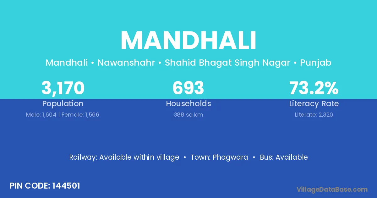 Mandhali village has a total population of 485 people, of which 229 are males and 256 are females.