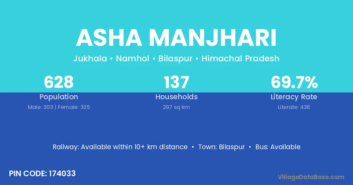 Asha Manjhari village has a total population of 628 people, of which 303 are males and 325 are females.