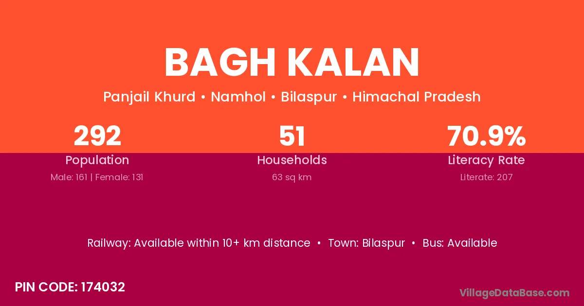 According to Census 2011 information, the village code of Bagh Kalan village is 174032.