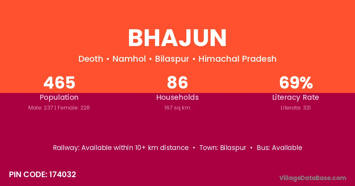Bhajun village has a total population of 465 people, of which 237 are males and 228 are females.
