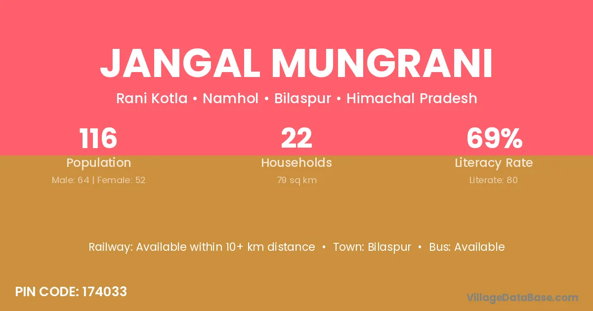 Jangal Mungrani village has a total population of 116 people, of which 64 are males and 52 are females.