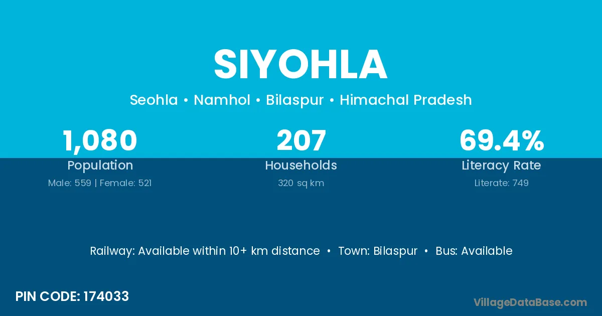 According to Census 2011 information, the village code of Siyohla village is 174033.