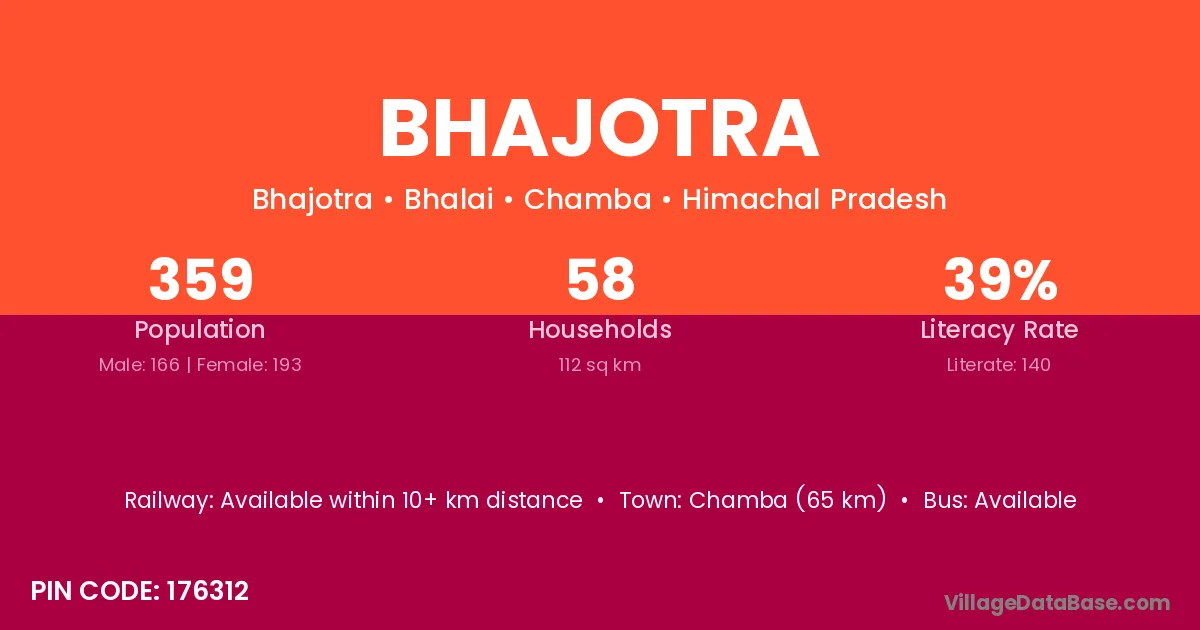 Chamba (65 km) is the nearest town to Bhajotra village for major economic activities and is located approximately 65 km away.