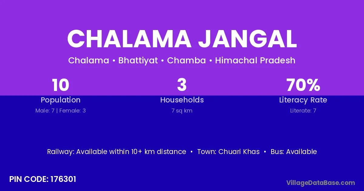 Chalama Jangal village has a total population of 10 people, of which 7 are males and 3 are females.