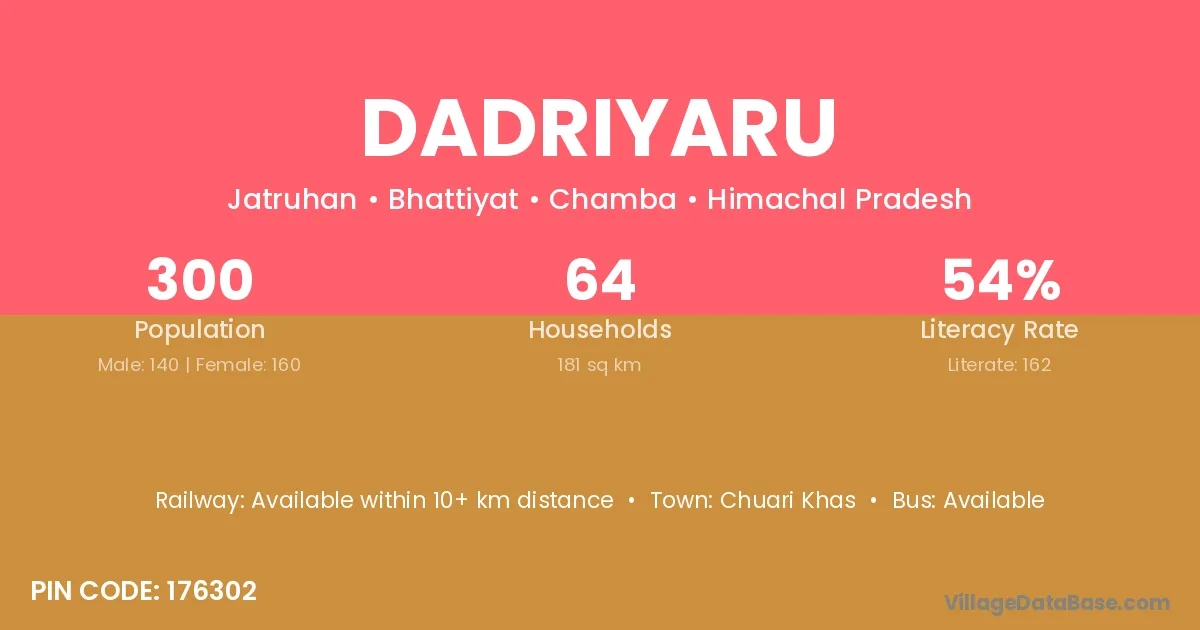 Chuari Khas is the nearest town to Dadriyaru village for major economic activities