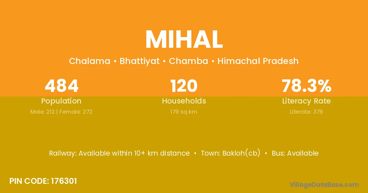Bakloh(cb) is the nearest town to Mihal village for major economic activities