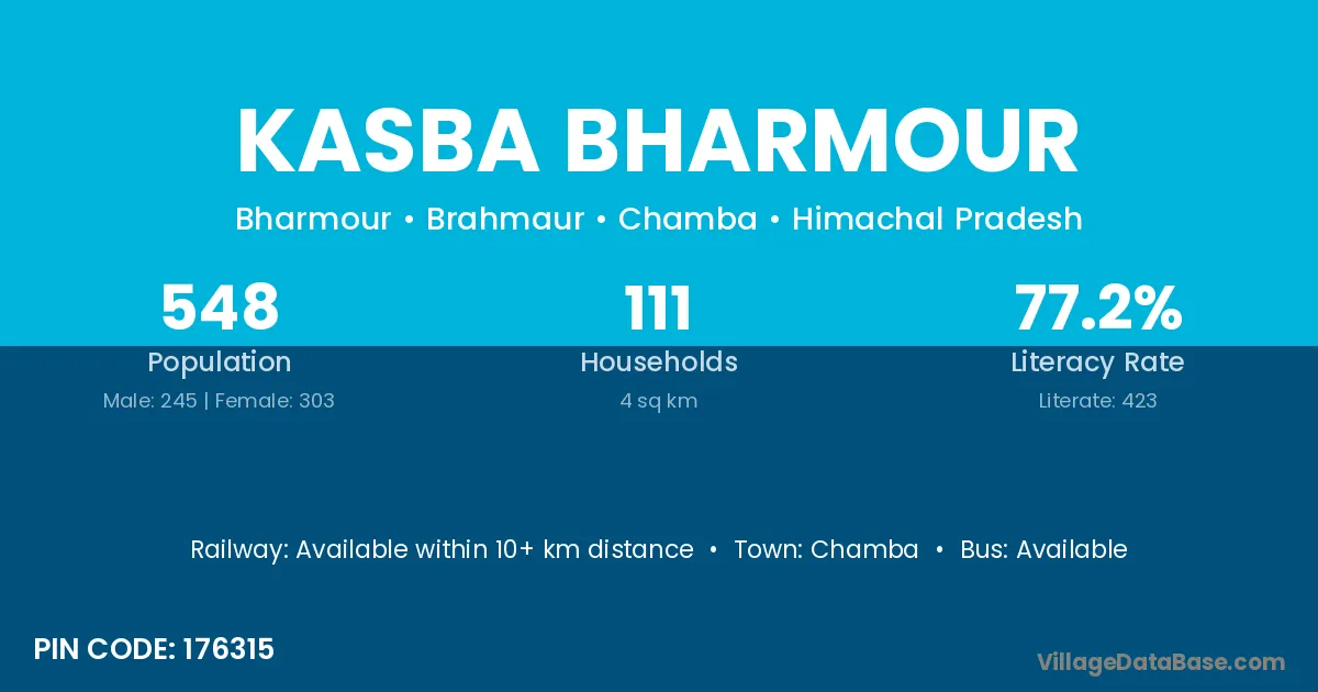 Kasba Bharmour village has a total population of 548 people, of which 245 are males and 303 are females.