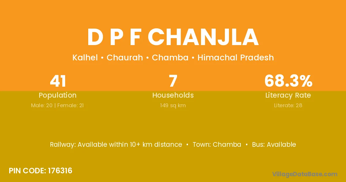 D P F Chanjla village has a total population of 41 people, of which 20 are males and 21 are females.