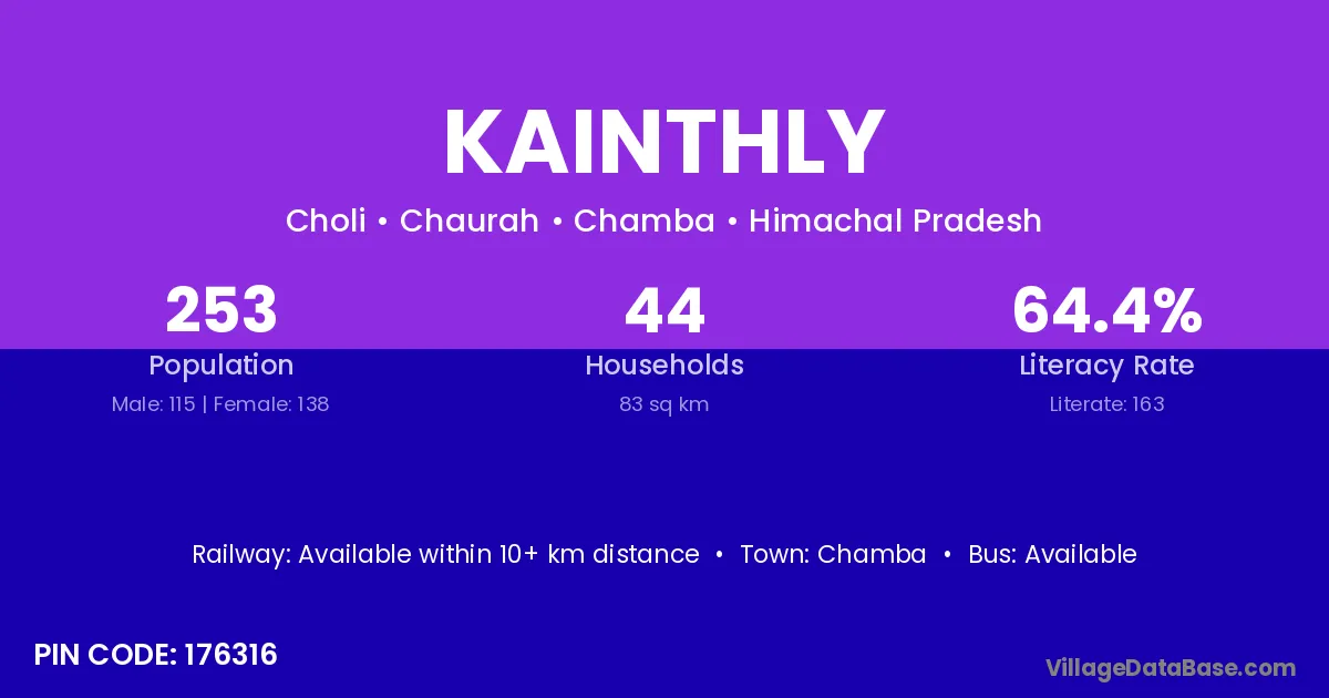 According to Census 2011 information, the village code of Kainthly village is 176316.