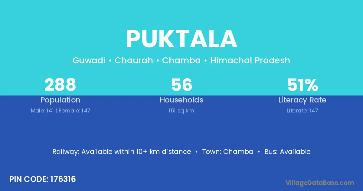 Chamba is the nearest town to Puktala village for major economic activities
