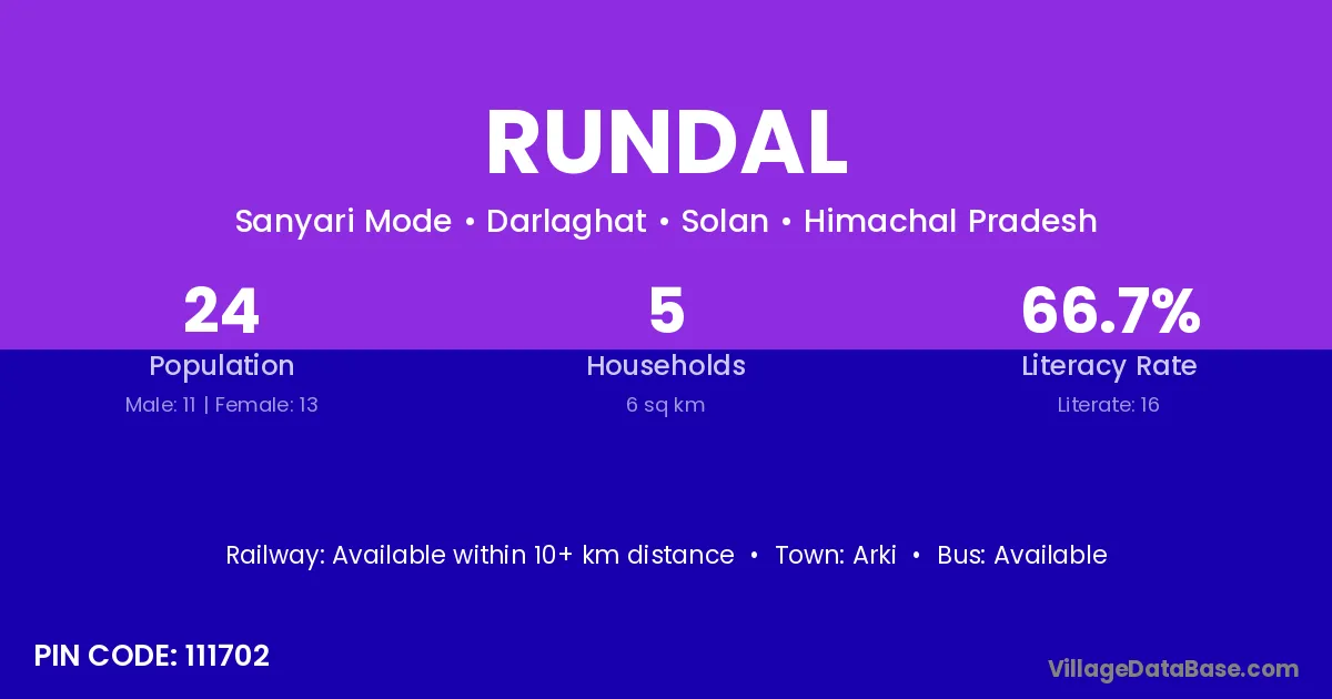 The literacy rate of Rundal village is 52.23%. Male literacy stands at 63.80% and female literacy at 40.78%.