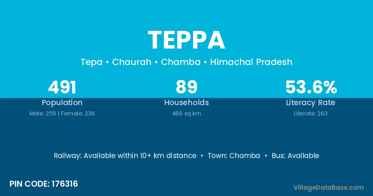 Teppa village has a total population of 491 people, of which 255 are males and 236 are females.