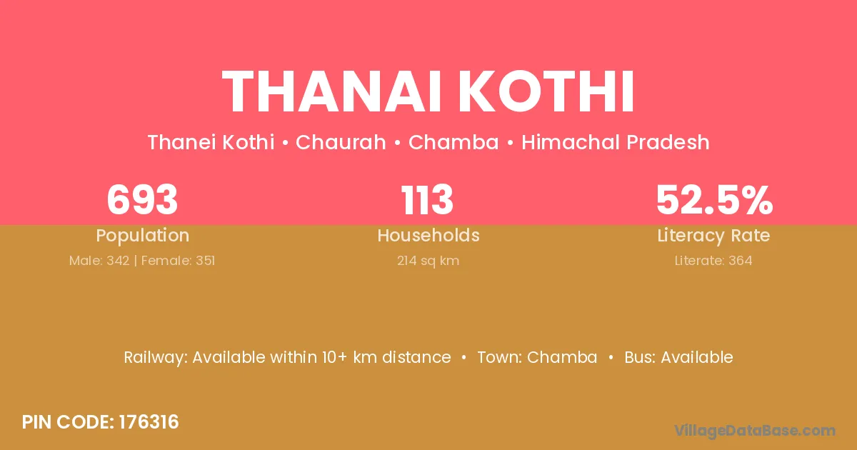Thanai Kothi village has a total population of 693 people, of which 342 are males and 351 are females.