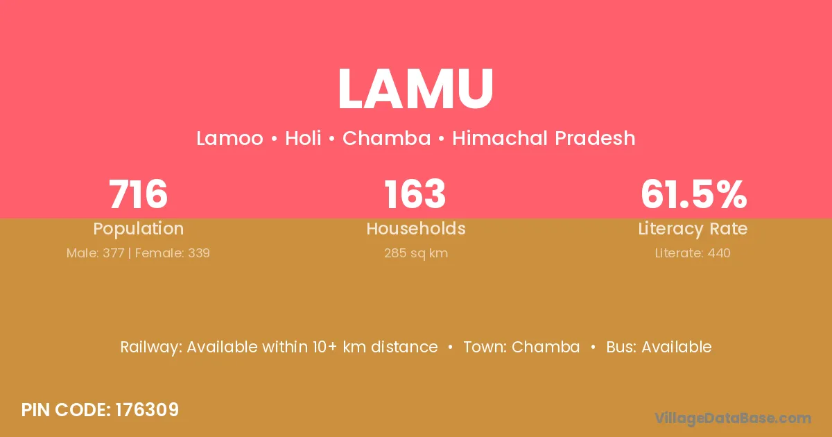 Lamu village is located in the Holi Tehsil of the Chamba district in Himachal Pradesh .