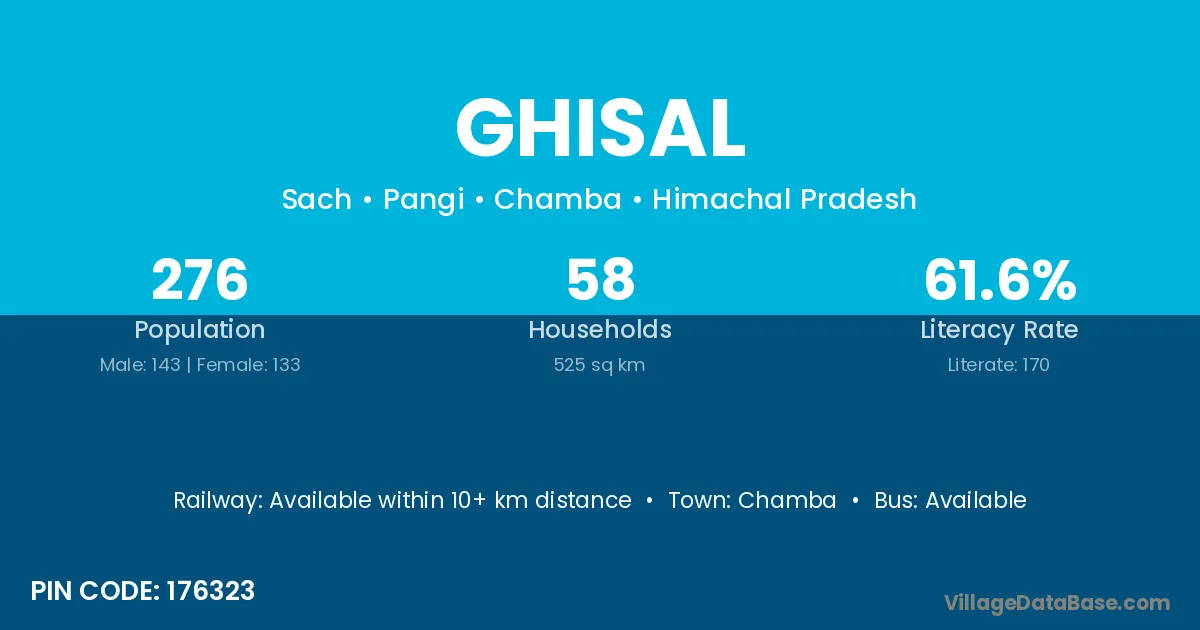 Ghisal village is located in the Pangi Tehsil of the Chamba district in Himachal Pradesh .