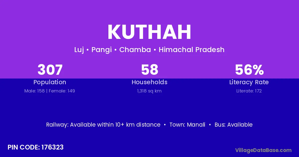 Kuthah village is located in the Pangi Tehsil of the Chamba district in Himachal Pradesh .