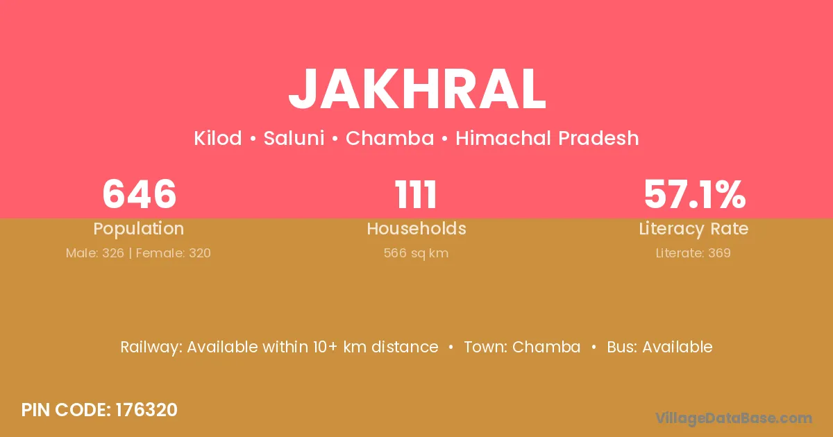 Jakhral village has a total population of 646 people, of which 326 are males and 320 are females.