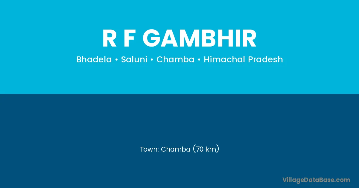 Chamba (70 km) is the nearest town to R F Gambhir village for major economic activities and is located approximately 70 km away.