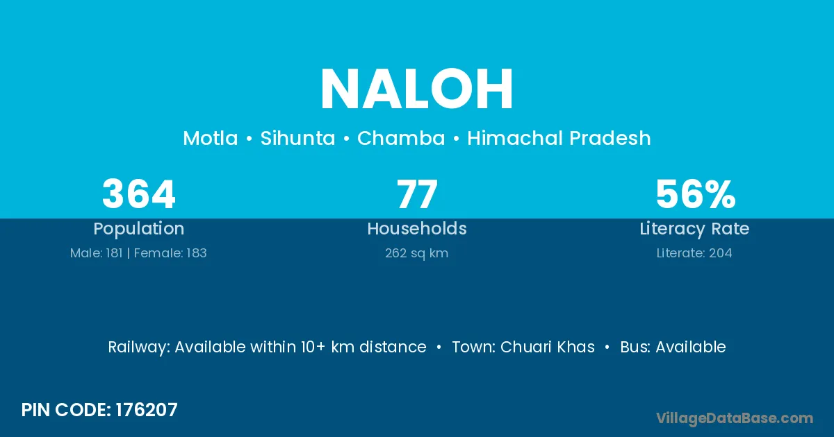 Naloh village has a total population of 364 people, of which 181 are males and 183 are females.