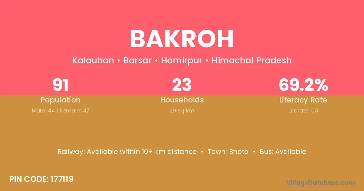 Bakroh village has a total population of 91 people, of which 44 are males and 47 are females.