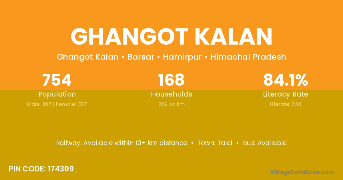 There are approximately 168 households in Ghangot Kalan village.