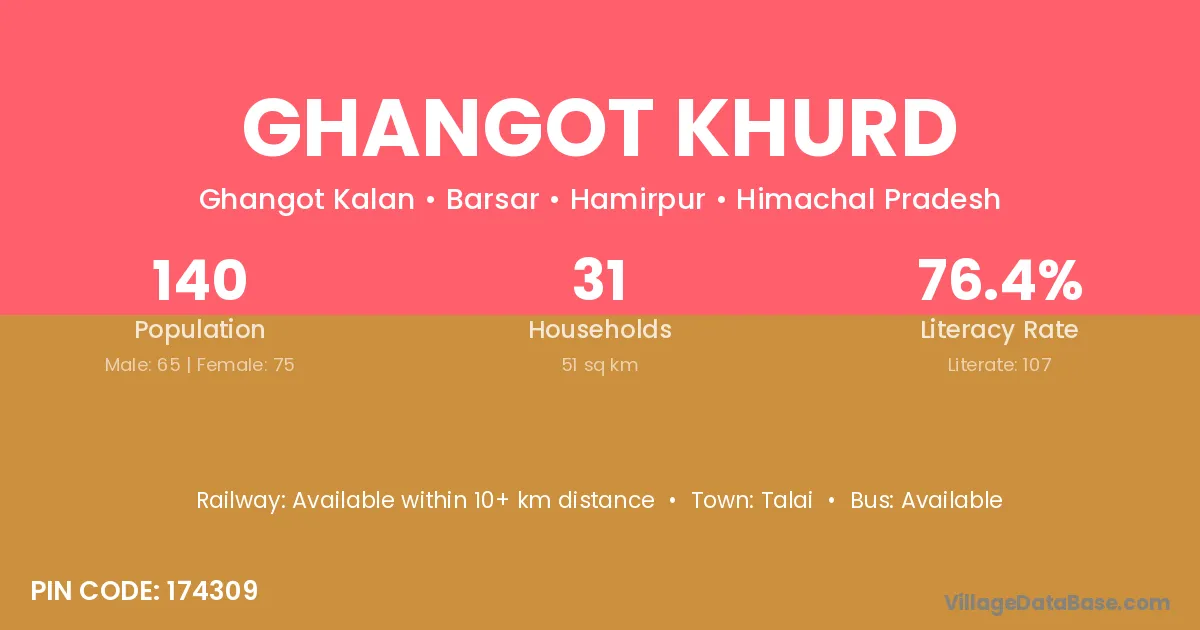 Ghangot Khurd village has a total population of 140 people, of which 65 are males and 75 are females.