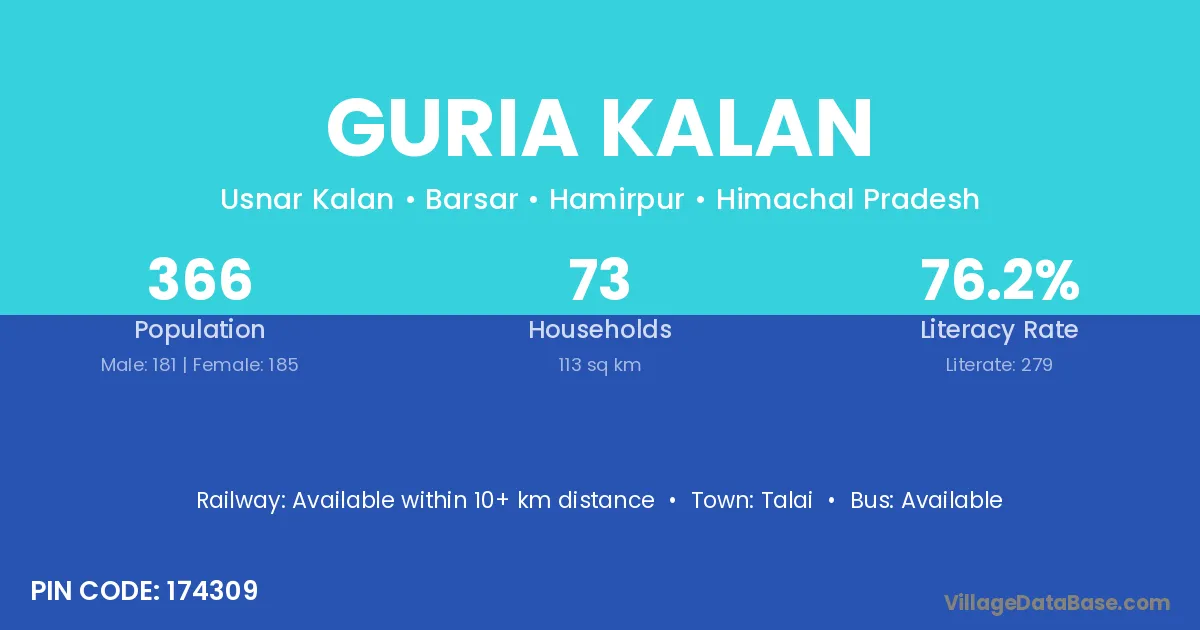 Guria Kalan village has a total population of 366 people, of which 181 are males and 185 are females.