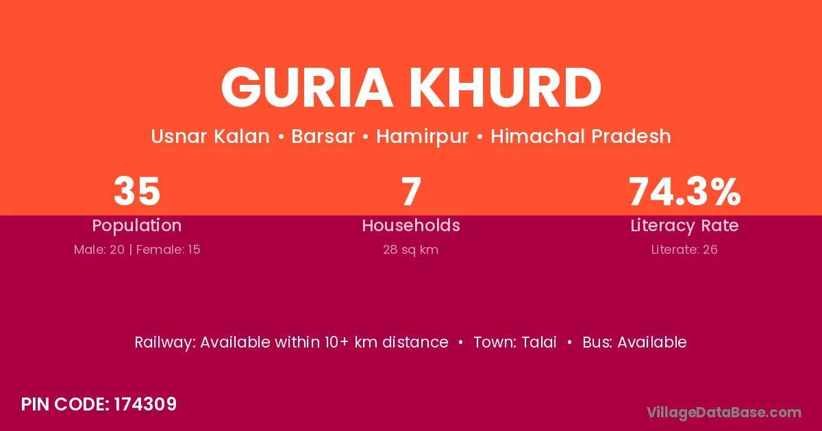 Guria Khurd village has a total population of 35 people, of which 20 are males and 15 are females.