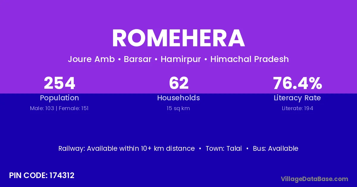 According to Census 2011 information, the village code of Romehera village is 174312.
