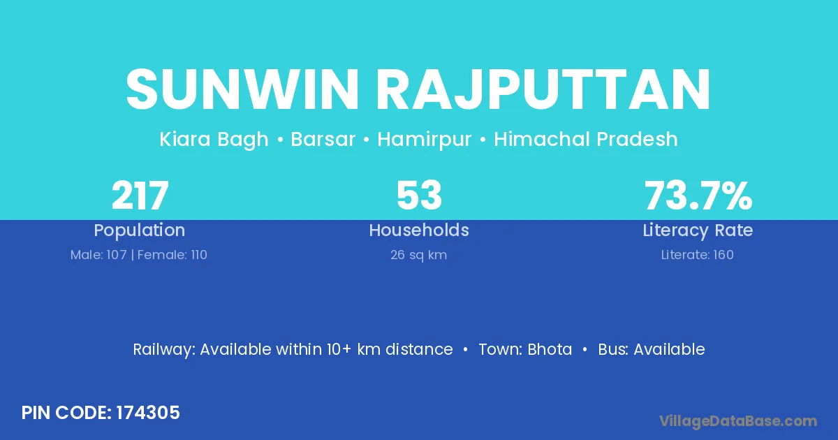 Sunwin Rajputtan village has a total population of 217 people, of which 107 are males and 110 are females.