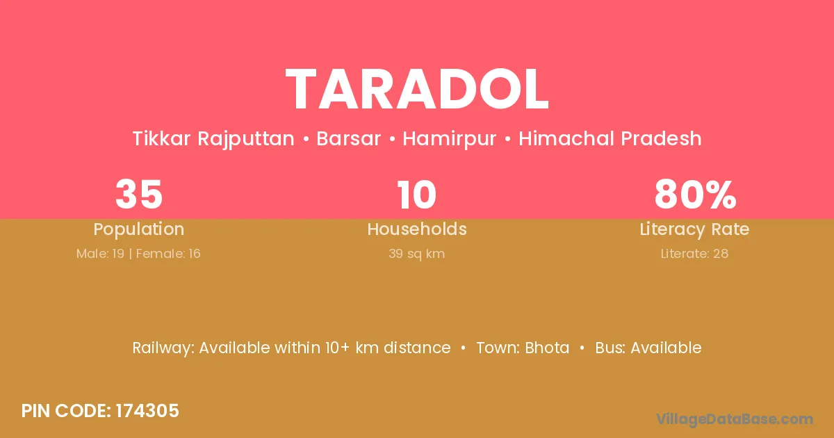 Bhota is the nearest town to Taradol village for major economic activities