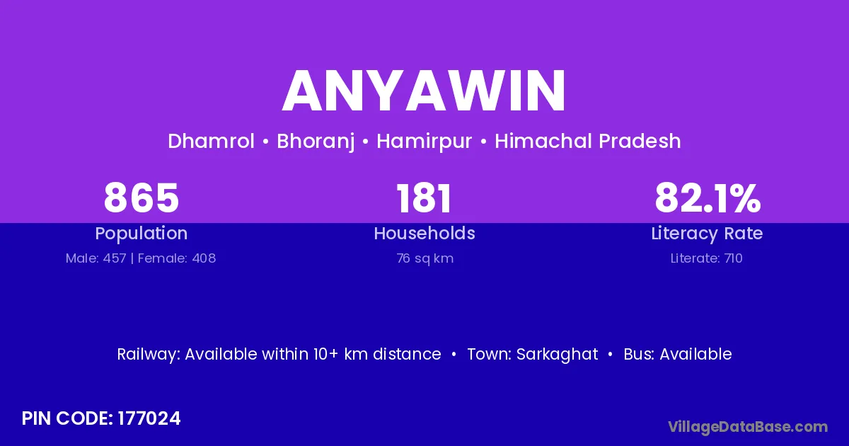 Anyawin village is located in the Bhoranj Tehsil of the Hamirpur district in Himachal Pradesh .
