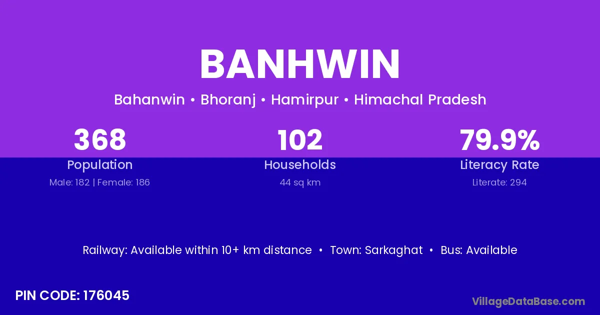 Banhwin village has a total population of 368 people, of which 182 are males and 186 are females.