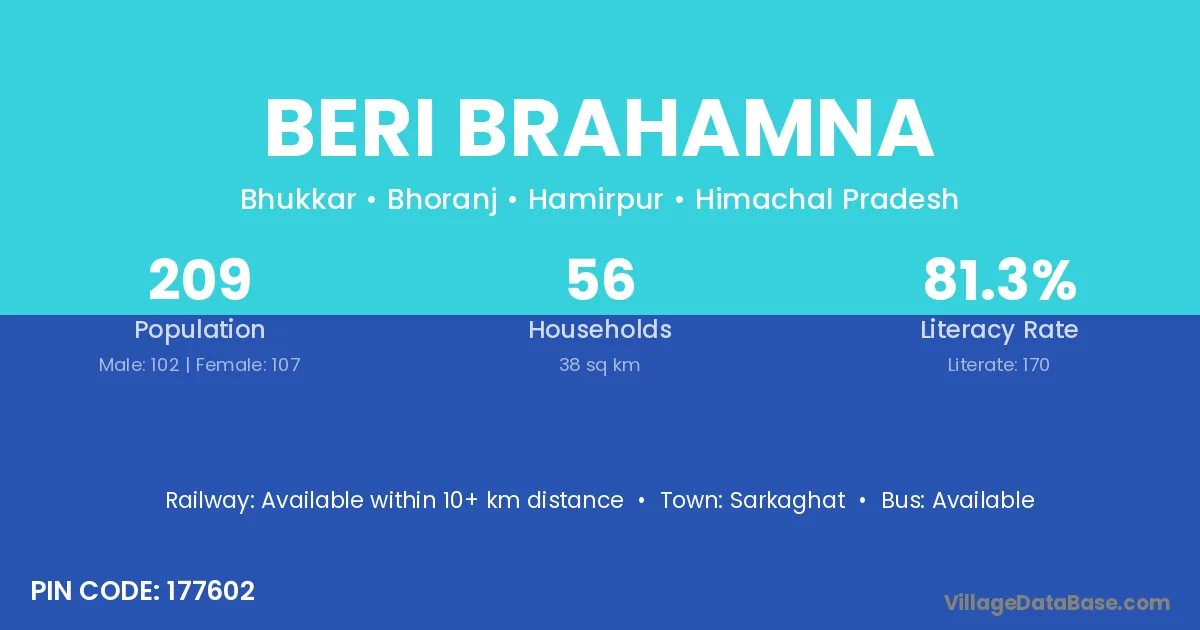 Beri Brahamna village has a total population of 209 people, of which 102 are males and 107 are females.