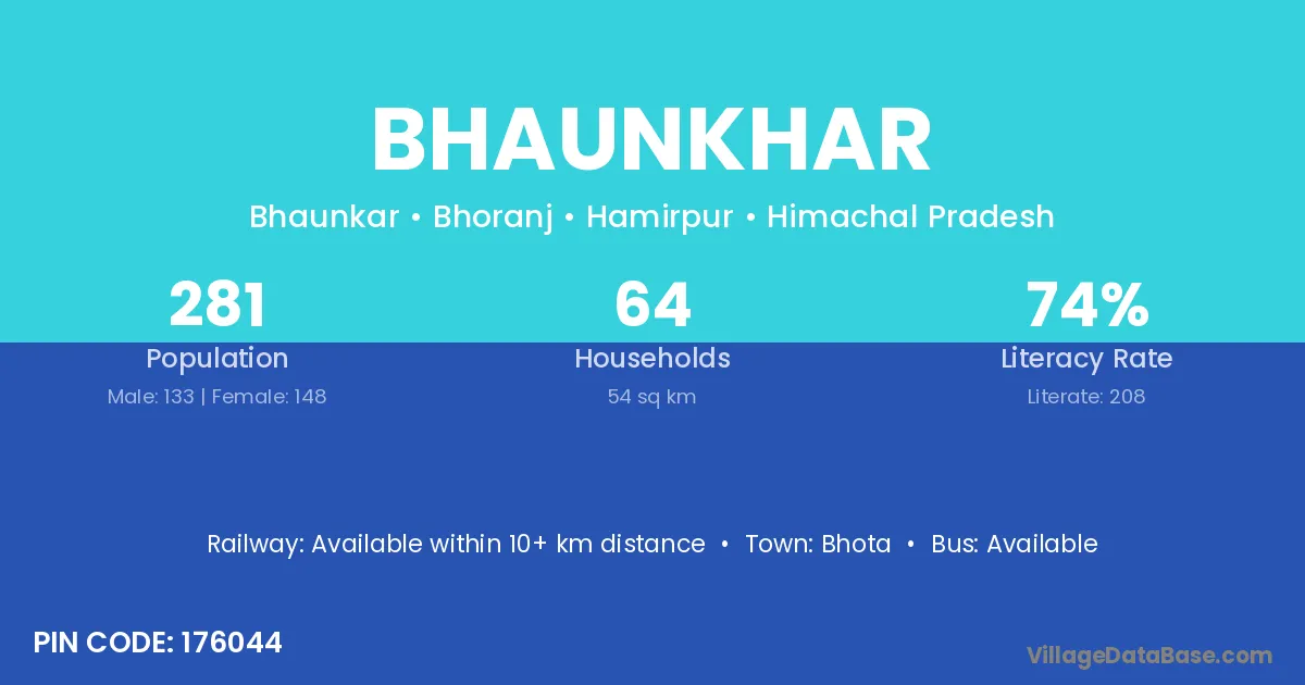 Bhaunkhar village has a total population of 281 people, of which 133 are males and 148 are females.